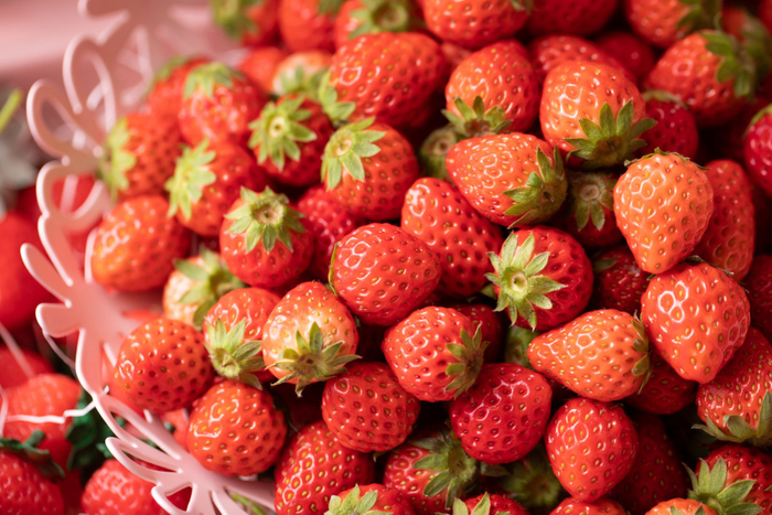 ①旬のいちごがフレッシュで食べ放題! ※SDGsの観点から、形が規格外のため通常は提供されないいちごを提供