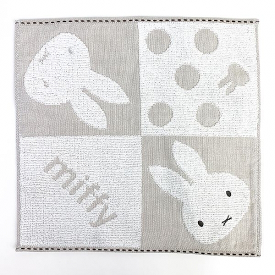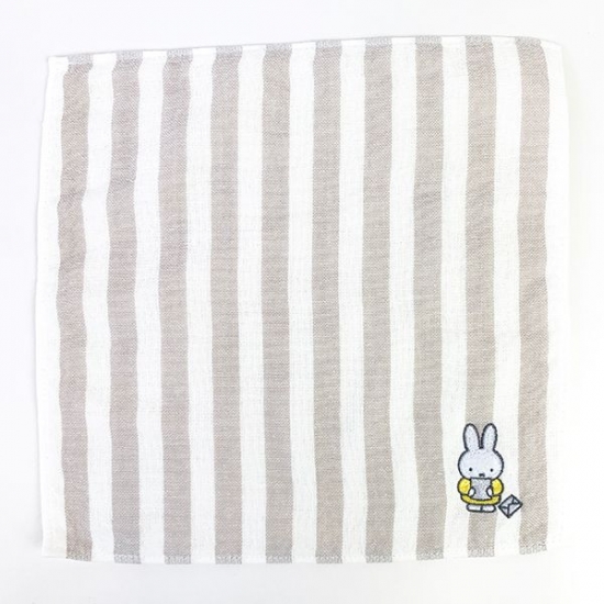 ボーダー柄の生地にかわいいミッフィーの刺繍が施されているタオルです。