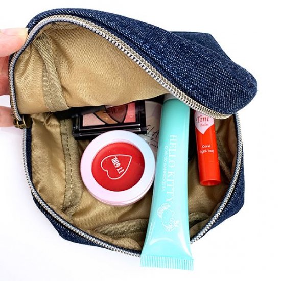 こちらはEDWINコラボではありませんが、デニム生地がオシャレなポーチです。ワンポイント刺繍のみのシンプルなデザインになっており、デニムカラーの良さを引き立てます。ファスナーはアンティークゴールドで年代問わずお使いいただけます。
