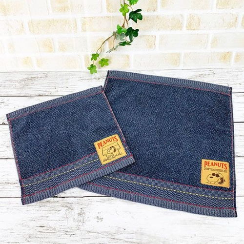 タオルなのにデニムカラー!?と驚かれるかもしれない、スヌーピーのタオルハンカチです。デニムに付いていそうなタグがより雰囲気を上げます。タオルはジャガー織りになっており、吸水力は抜群◎