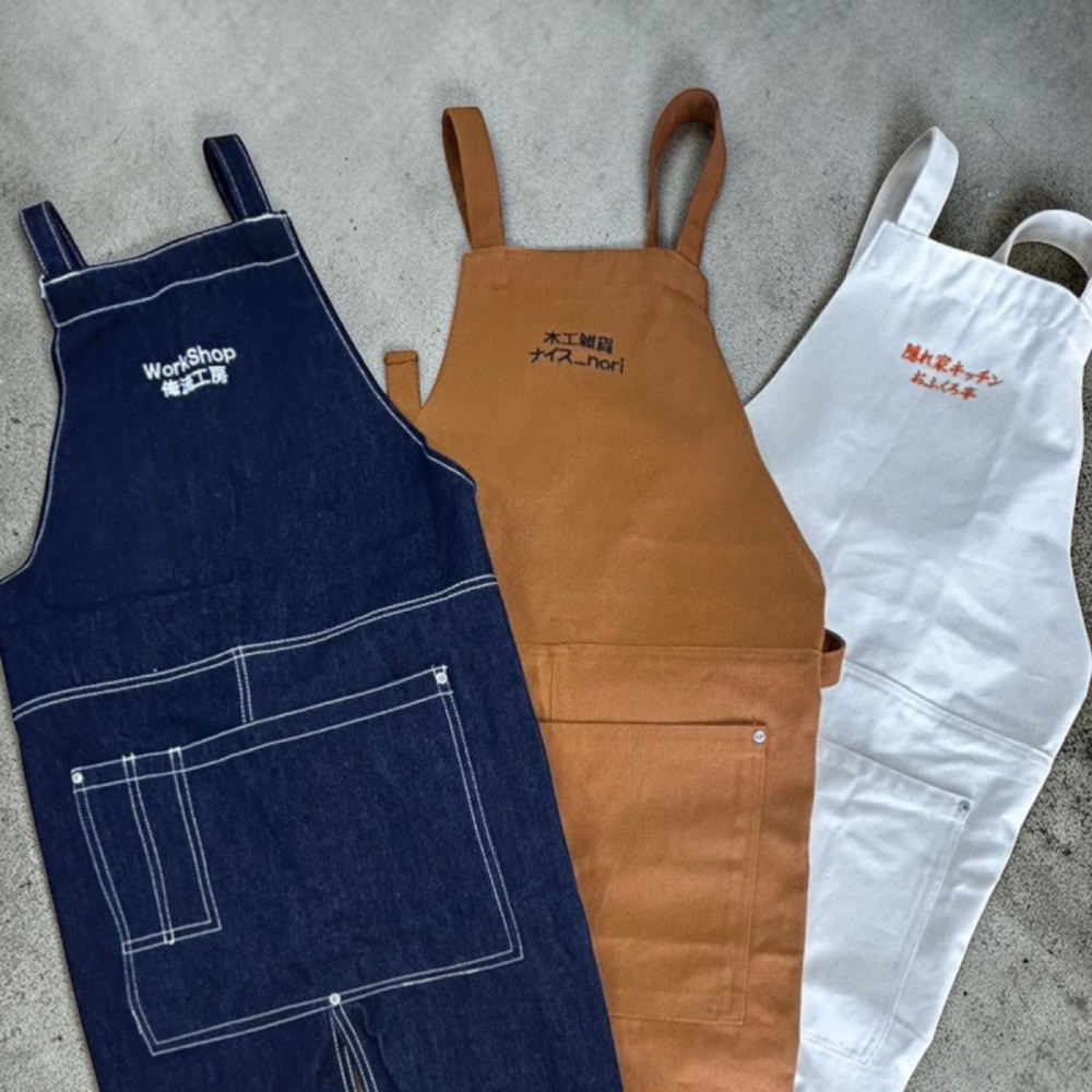 本商品は、刺繍による名入れができるオリジナル仕様のキャンバスエプロンです。しっかりとしたキャンバス生地を使用し、日常使いはもちろん、カフェや飲食店での着用、作業用、DIYシーンなど幅広い用途に対応できる実用性を備えています。