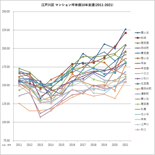 <各区における坪単価遷移グラフ>
