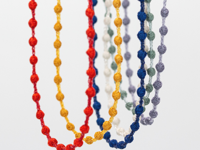 プチギフトにぴったり!老舗刺繡メーカーから、重さわずか1gの糸のネックレス「ナノスフィア」が発売スタート。