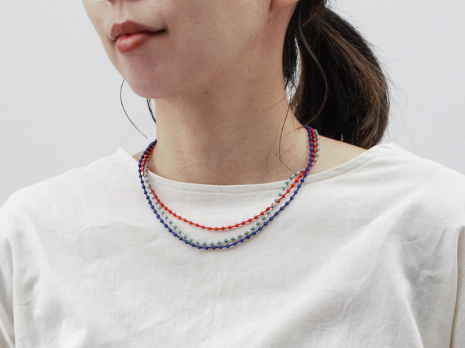 全て糸で出来たネックレスは、昨今増加傾向にある金属アレルギーや、重さによる肩こりなど、アクセサリーを着ける時のお悩みを解決するアイテム。そんなトリプル・オゥの商品を、気軽にお試し頂けます。