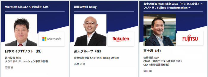 また併催セミナーでは日本マイクロソフト 常務による『ChatGPT×DX』セミナーをはじめ、サッポロ、ベネッセ、富士通など業界トップ企業の役員などが連日登壇。DX化、経営課題解決、働き方改革の最新事例を学べます。