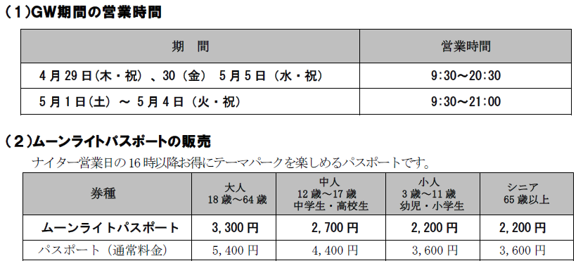 (1)今だけお食事券がついてくる!春の年間パスポート購入キャンペーン