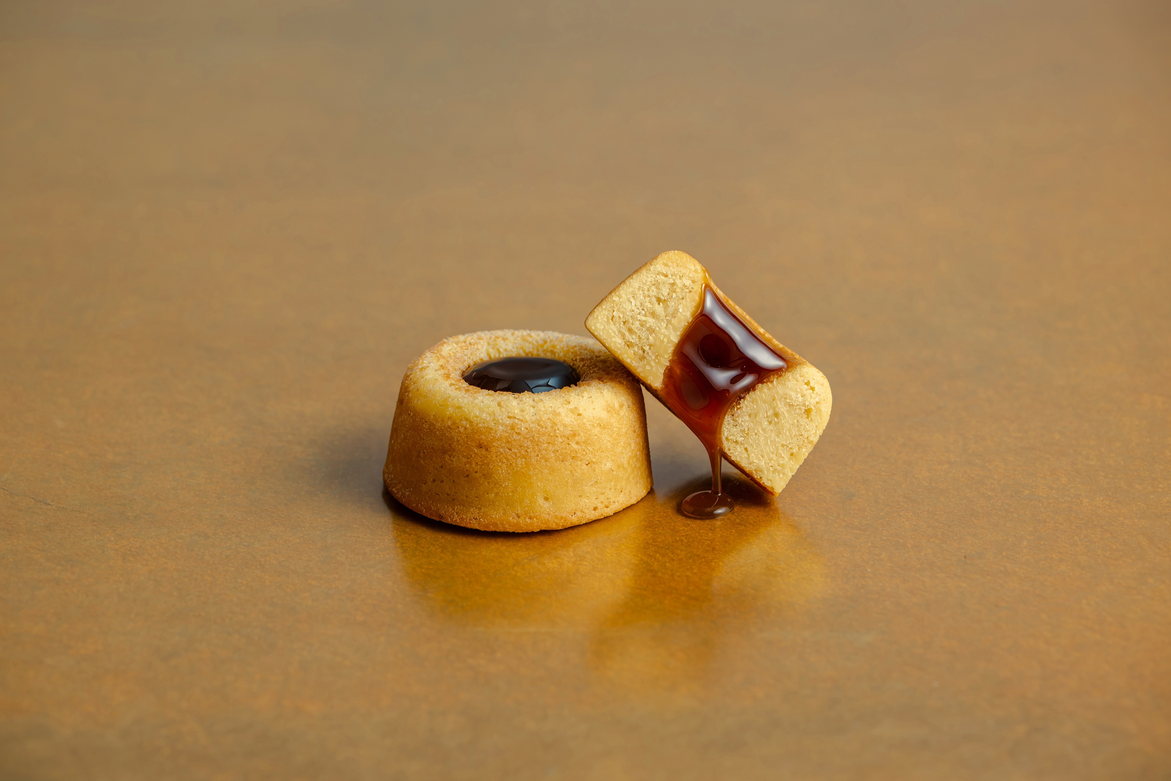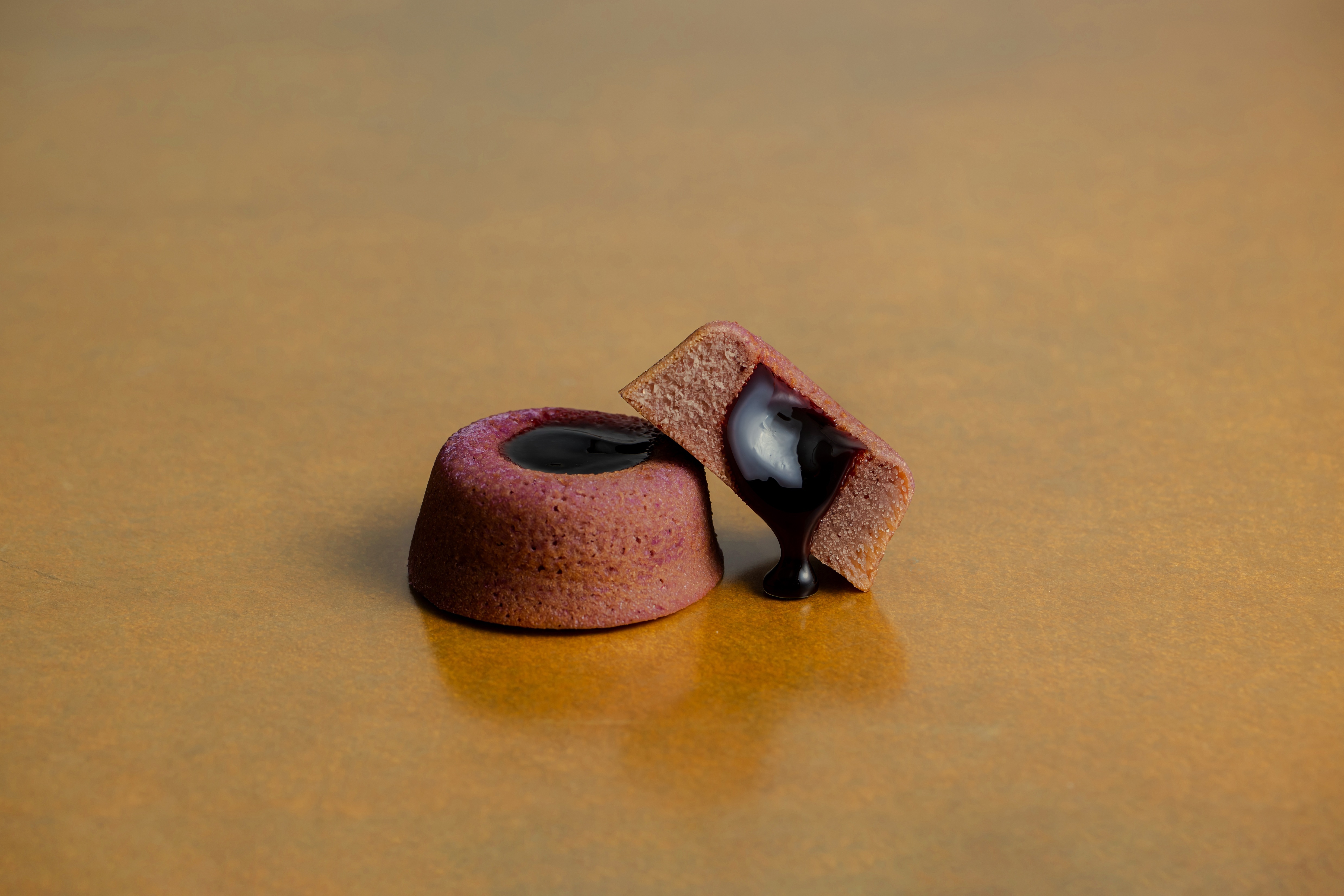 安納芋・紫芋、それぞれの蜜を練りこんだパート・ムワルーを焼き上げ、その中心にはキャラメル、その上に芋蜜のジュレを重ねた一品。芋の蜜の優しい甘さ、香りが直接味わえる、今までにない洋菓子です。