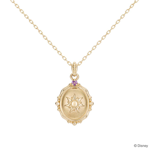 王国のシンボル「太陽の紋章」をモチーフに。「ラプンツェル」のドレスをイメージしたカラーの宝石“アメシスト”に、愛と優しさの想いを。