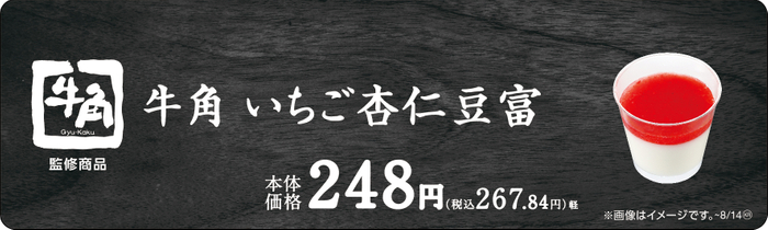●商品特長:牛角店舗の人気デザート「なめらか杏仁豆富 いちごソース」をイメージしました。北海道産純生クリーム入りの濃厚な杏仁豆富に果肉入りの苺ソースをトッピングしました。