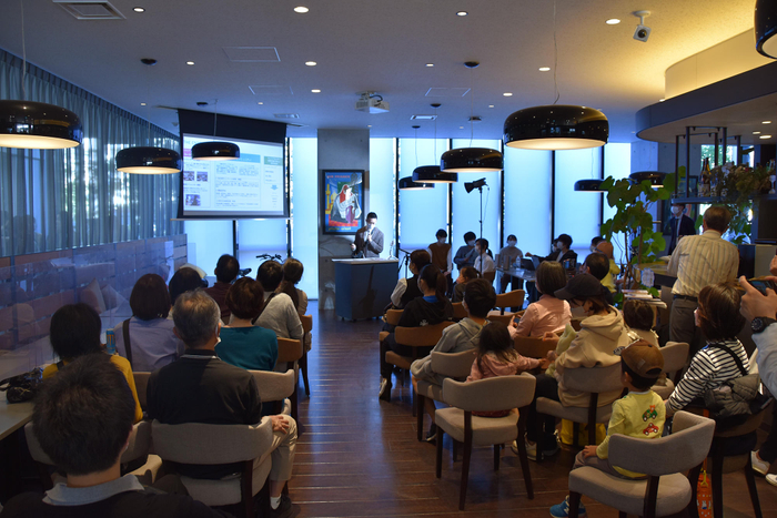 こうして各チームの動画が完成し、11月5日の大学祭で動画お披露目会が開かれました。この会の企画・運営を担当したのも動画を制作した学生たち。来場者には名古屋商工会議所と名鉄協商の協力で「きよめ餅総本家」「亀屋芳広」の和菓子もふるまわれ、子どもから大人までたくさんの人が集まりました。自分たちの動画が世に出され、3人はどんなことを感じたのでしょう。