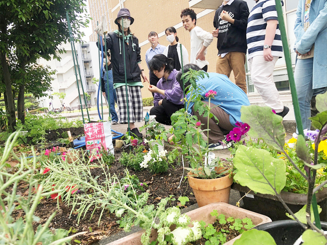 園芸好きが集まるとってもゆるいサークルです。天白キャンパスの隅に小さな花壇をつくって、地植えやプランター栽培をしています。今年はナス・ミニトマト・パプリカ・キュウリ・小玉スイカ・パッションフルーツ・イチゴ、花では金魚草・マリーゴールド・ラベンダーなどを植えました。