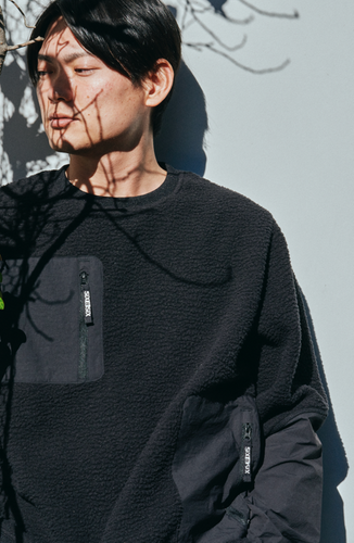 COMPASS ANYTIMEは、日本独自のプロダクトで、”雪山と街の境目を無くす”をコンセプトとしたタウンユースウェアです。こだわりのジャケットとパンツは耐水圧10,000mm、透湿性10,000g/m2、DWR撥水加工が施されており、スノーボードウェアはもちろんレインウェアとしても着ることができます。また、収納力のあるポケットも多く、それらのポケットをタフなナイロン生地にすることで、デザインのユニークさを表現しながら型崩れしないような配慮がされておりユーザビリティも抜群です。さらにクルーネックフリースの袖をナイロン素材にすることで、ジャケットの袖通しが非常にスムースになるという、細かいポイントまでこだわりを盛り込んだウェアです。