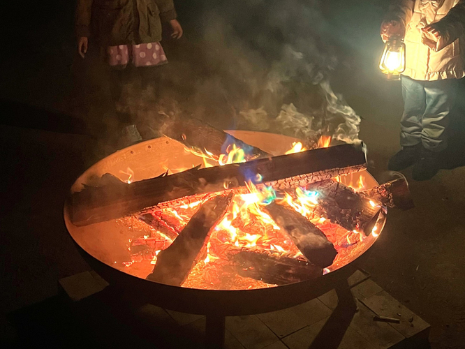 17時からは木立の中の大きな焚火を眺め、あたたまりましょう。