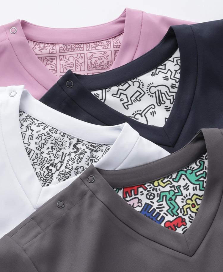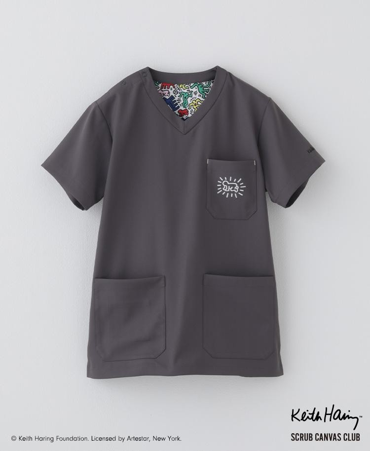 商品名:Scrub Canvas Club:Keith Haringスクラブトップス・パンツ(男女兼用)