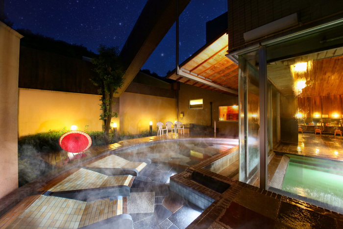 開放感のある露天風呂では、塩原の紅葉した山々や温泉街を一望でき、夜は星空を眺めながらのご入浴が楽しめます。