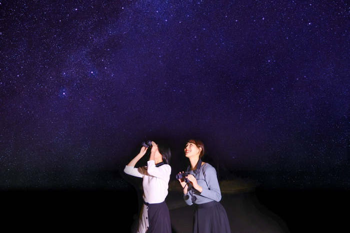 そして、夜には星空ツアー(事前予約/無料)も開催しております。双眼鏡を貸し出しており、の散策路を歩きながら星が見えるところまでご案内いたします。自由に鑑賞できますので、都心では味わえない星空をお楽しみいただけることでしょう。