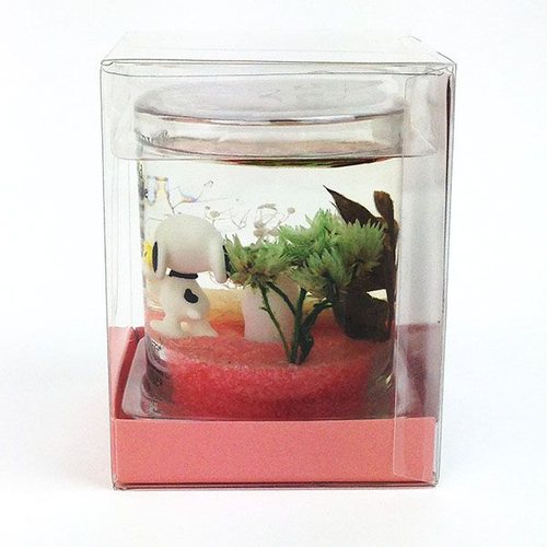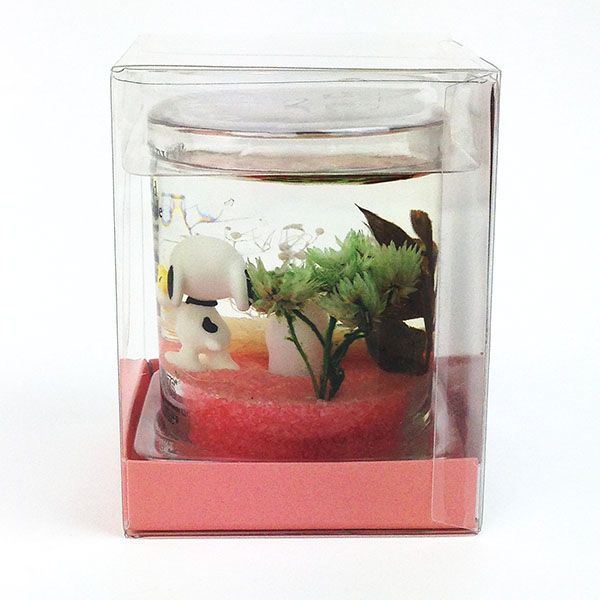 スヌーピーとウッドストックがハグしているのがかわいい、インテリアランプです。無香料のジェルの中に、スヌーピーのフィギュアが入っていて、LEDランプが点灯します。ろうそくのように優しい灯りなので、癒されますよ。サイズは6×7.5cmなので、置く場所にも困りませんね。