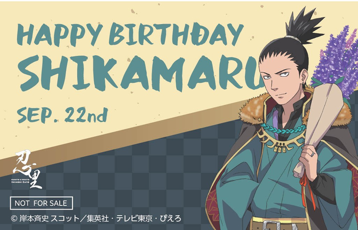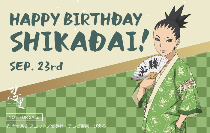本イベントでは、これまでに忍里でイベントを行ってきたキャラクターたちの誕生日をお祝いする、忍里オリジナルのバースデーカードをご用意いたします。9月は、「はたけカカシ」「奈良シカマル」「山中いの」「奈良シカダイ」をお祝いします!