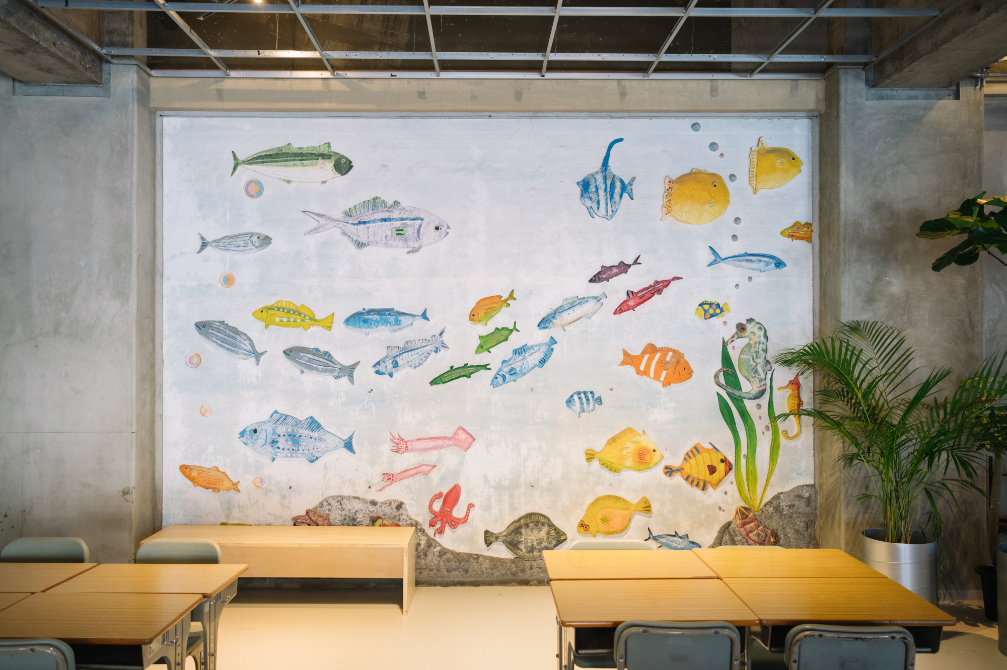そんなコンセプトで生まれ変わった旧網代小学校。カフェ併設のコミュニティスペース、教室1室のなつかしさ感じるシェアオフィス、月額5,500円のコワーキングスペース、懐かしい元保健室・校長室の会議室まで、多彩な空間が「何かを始めたい人」を静かに迎え入れています。