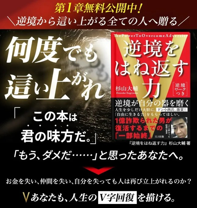 起業家‧教育者‧社会活動家として多様な活動を展開する杉山大輔が、自らのどん底からの復活劇を赤裸々に綴った書籍『逆境をはね返す力』(ILI出版)を、2025年8月29日にAmazonにて発売します。本書は、金融詐欺に巻き込まれ、すべてを失った著者が、うつ状態のなかで希望を見出し、再び社会に立ち上がっていくまでの軌跡を描いています。単なる回顧録ではなく、読者が自らの逆境に立ち向かうための「実践書」としても活用できるよう、ワークシートや図解も充実。