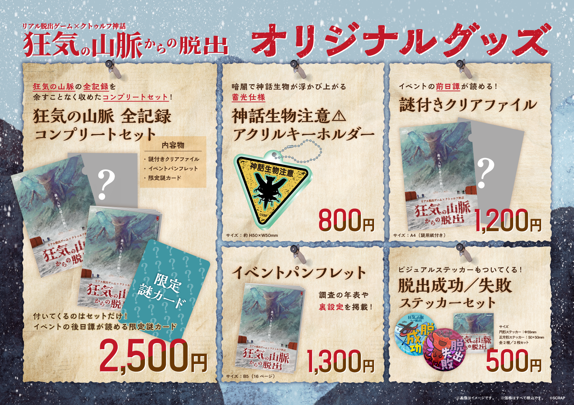 リアル脱出ゲーム×クトゥルフ神話『狂気の山脈からの脱出』オリジナルグッズ一覧