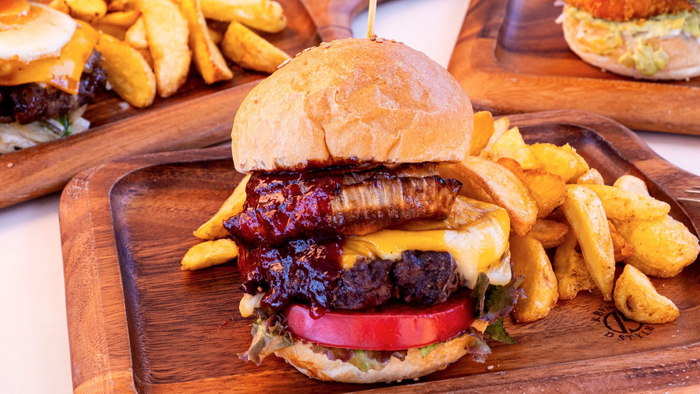 「ミエレ ザ ダイナー」では待望の『淡路牛100%DINER’Sバーガー』が新登場!贅沢に淡路牛100%を使用した粗挽きパティに、肉厚で甘みの強い淡路島玉ねぎのソテーを大胆にサンドした食べ応えのある一品です。また、淡路島のブランド卵「北坂養鶏場」の新鮮な卵をとろりと添えた『月見バーガー』や、旬のサーモンをサクッと揚げて自家製トリュフマヨネーズをたっぷり絡めた『サーモンカツバーガー』も提供。絶景オーシャンビューとともに、ここでしか味わえないダイナミックなバーガー体験をぜひお楽しみください。