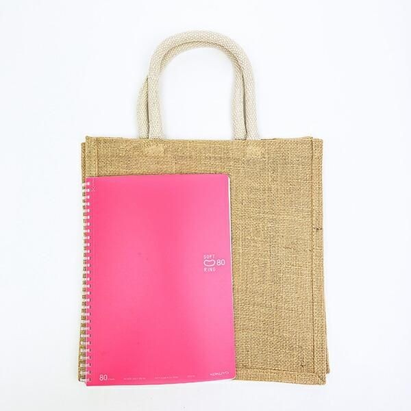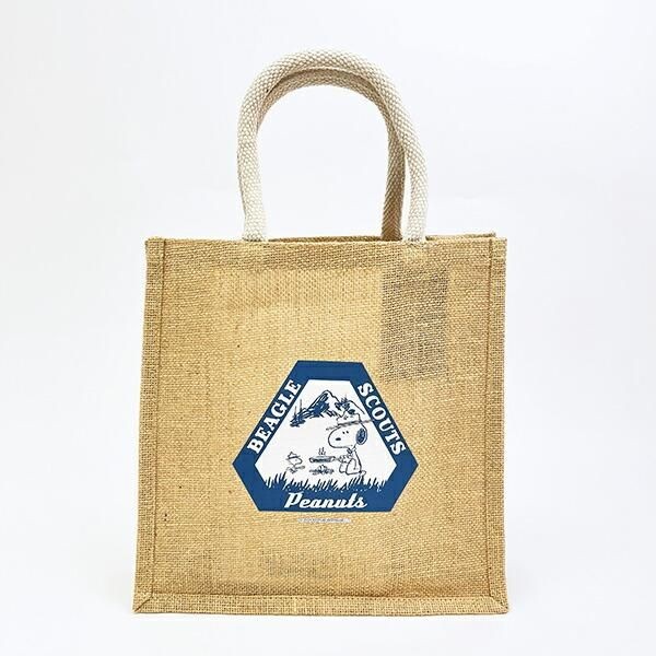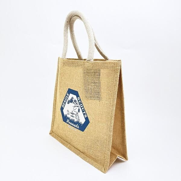 こちらはスヌーピー ビーグルスカウト ジュートバッグ(M) サイズ:30cm×30cm×12cmです。さっそくジュート素材にあたたかみを感じます!