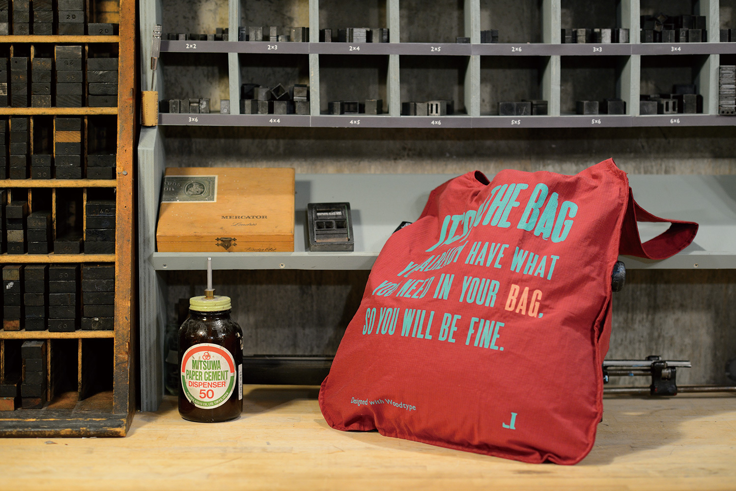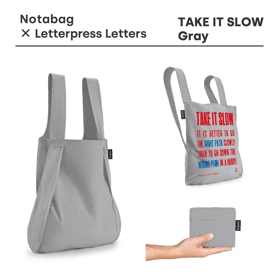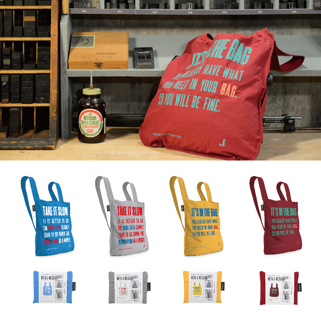 60~70年代に作られた木製活字を使用し、活版印刷機でハンドプリントしたポスターを、そのままNotabagにデザインしました。