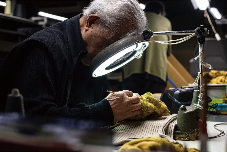ニット製品は構造が非常に複雑で、イメージ通りの形を生み出すには、多くの知識と経験が必要になります。松井ニット株式会社は1965年の創業から半世紀以上にわたってニットを専門とし続け、職人が知識と経験をもとに最先端技術を駆使して、世界で愛される高品質な超一流デザイナーブランドの商品を生み出してきました。LOOPには、そのすべてが惜しみなく注がれています。