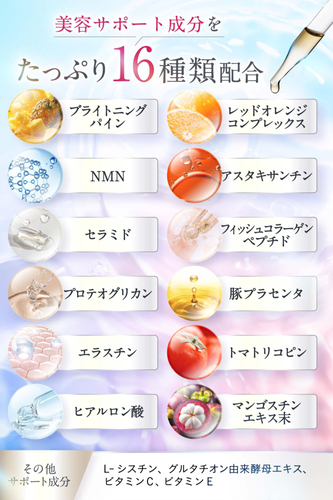 計16種の美容サポート成分をバランスよく配合しています。