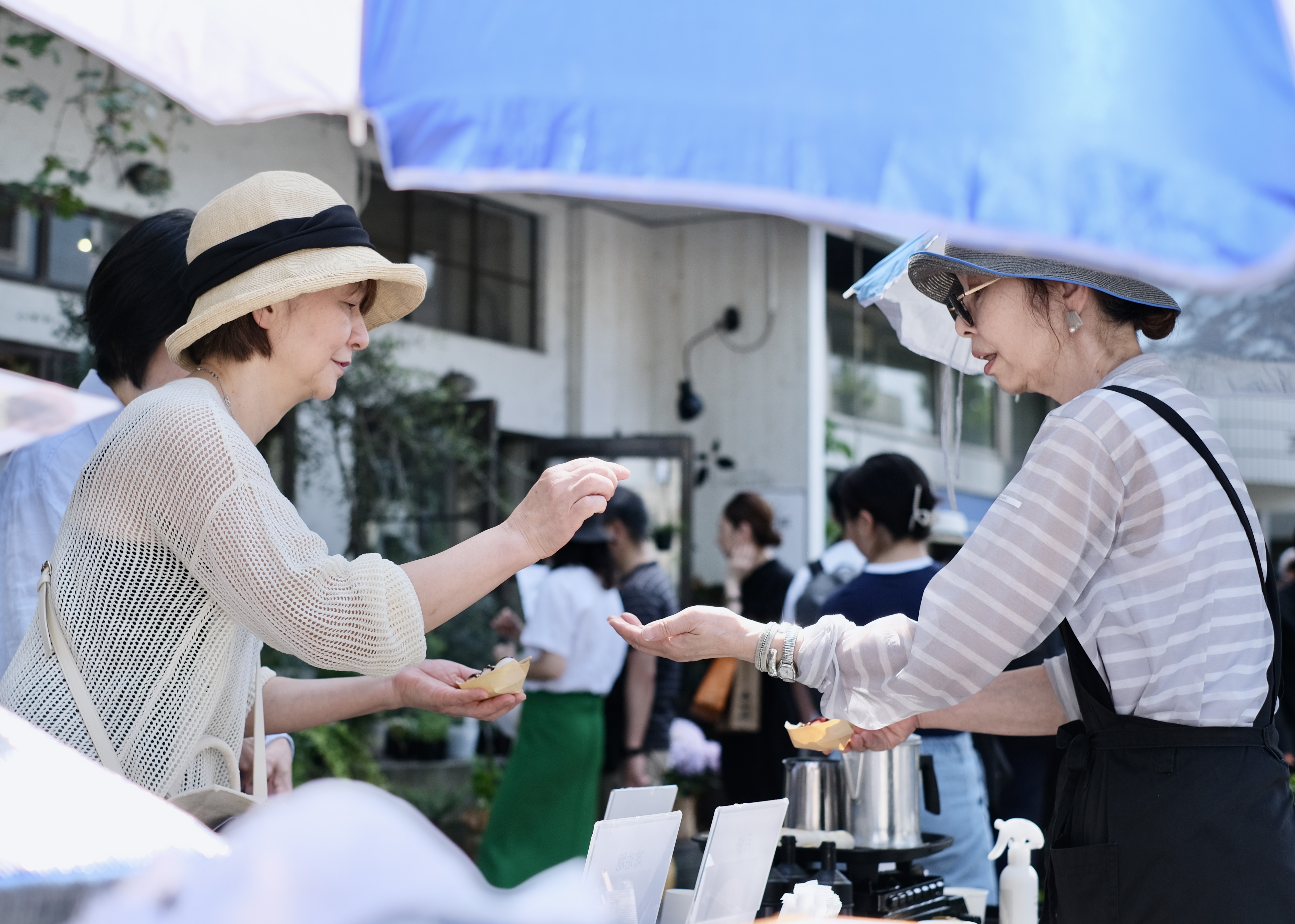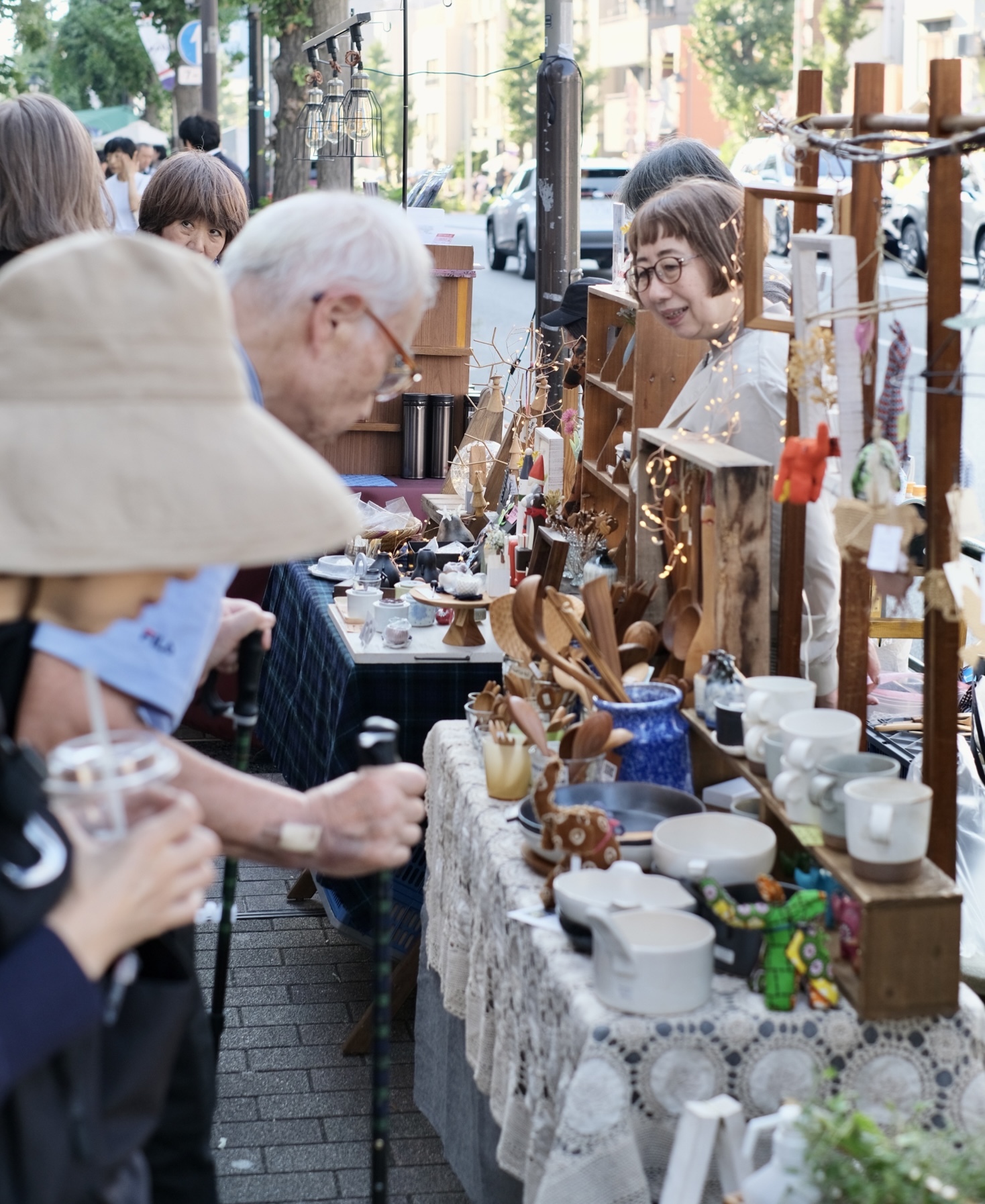蚤の市エリア、飲食エリア、食材エリアなどがあり、地元目黒からの出店も多く、地域の人も出店者として参加しているのが特徴です。またマルシェというと若い人が集まるイメージが有りますが、シニアの出店者さんも多く、また昔から住むお年寄りが多い土地柄もあり「大人が集まるマルシェ」として、お年寄りが買い物を楽しむ姿が風物詩となっています。