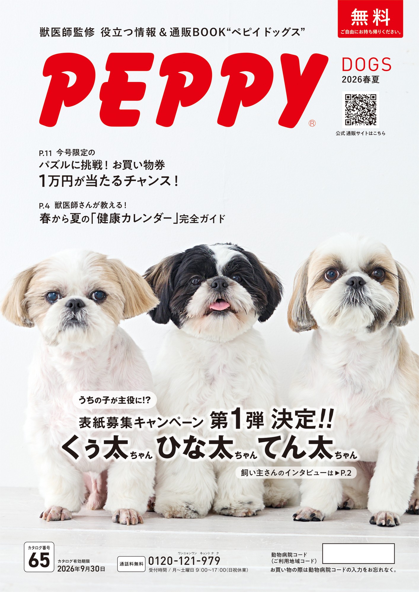 発刊部数150万冊を超えるPEPPPYカタログの2026年春夏号の猫の表紙にはMIXのみさごちゃん、犬の表紙にはシーズーのてん太ちゃん、ひな太ちゃん、くぅ太ちゃんが選ばれました。ペピイのサイトでは2026年夏号、秋冬号の表紙を飾る犬猫各3家族が発表され、第一弾として春夏号の表紙を飾る犬猫、その飼い主様達へのインタビューや、撮影時の感想や愛犬・愛猫との幸せな時間などについてのコメントを掲載しています。第二弾として2026年4月下旬頃に夏号の表紙を飾る犬猫のインタビューを掲載し、以降もカタログ発刊時期に順次公開を予定しています。