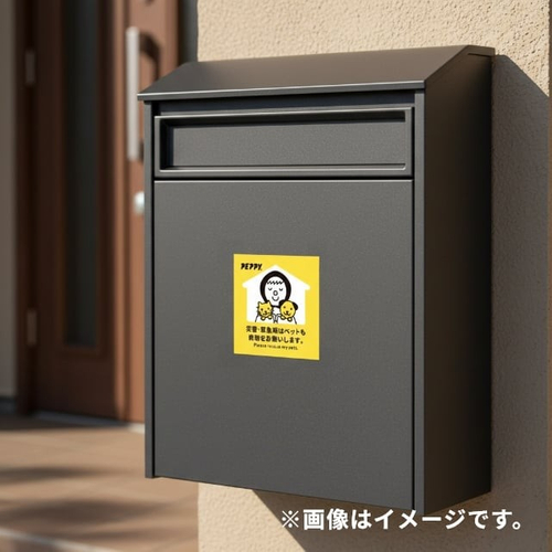 「わんにゃん防災ステッカー」は、玄関・ポスト・宅配BOXなど人目につきやすい場所への掲出を想定した防災アイテムです。