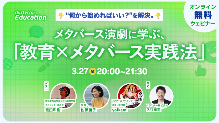 クラスター、『"何から始めればいい?"を解決。メタバース演劇に学ぶ「教育×メタバース実践法」』教育関係者向け無料オンラインウェビナーを開催