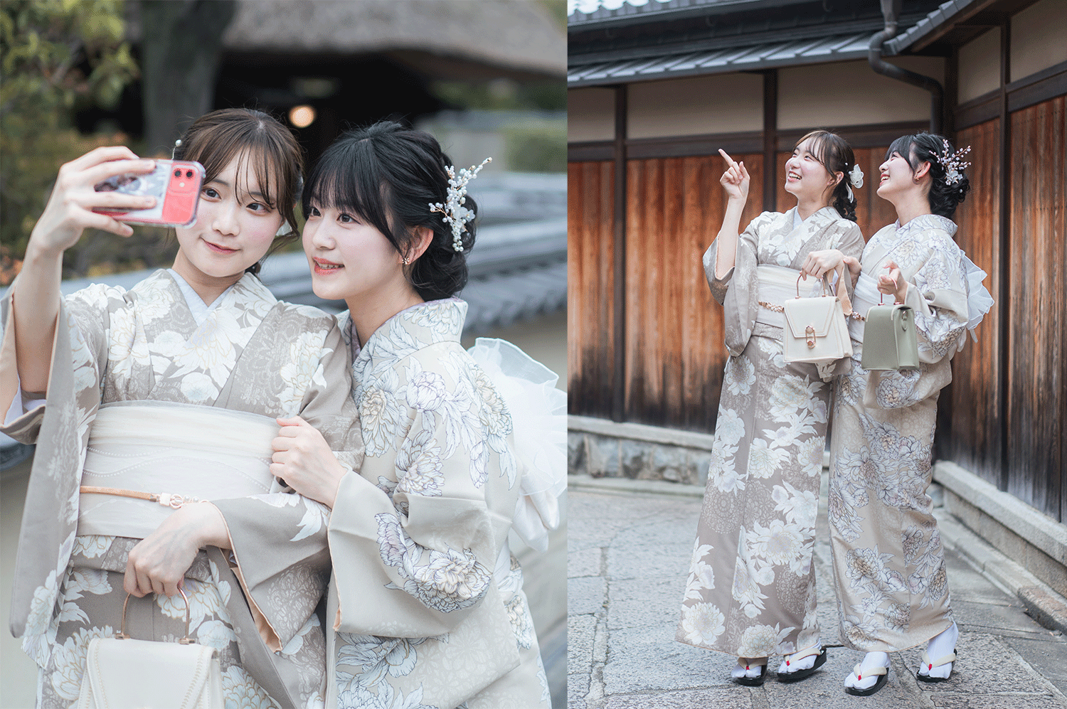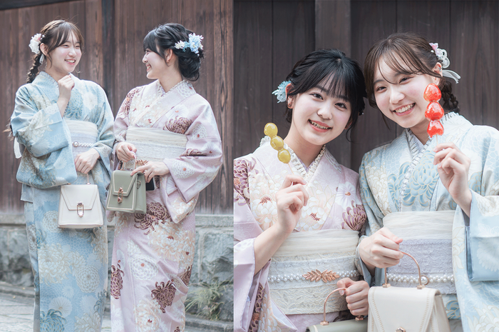 最近流行の「ニュアンスカラー」を取り入れた淡い色調が特徴で、伝統的な京都の景観と調和するデザインでSNS映え間違いなし。祇園や東山などの有名観光地での散策にも最適です。京都観光を一層魅力的に彩る、ぴったりの一着を見つけていただけます。