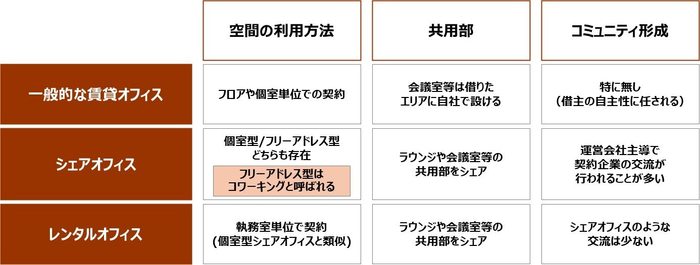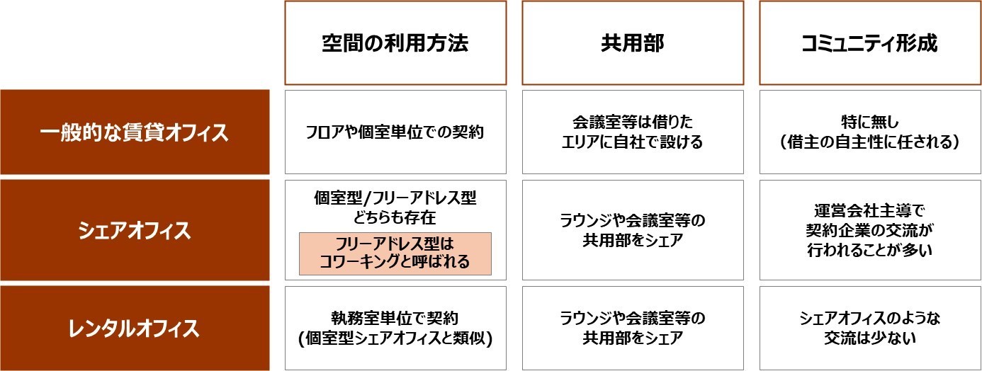 この3つのオフィス形態との違いや関係性についてもう少し詳しくご説明したいと思います。