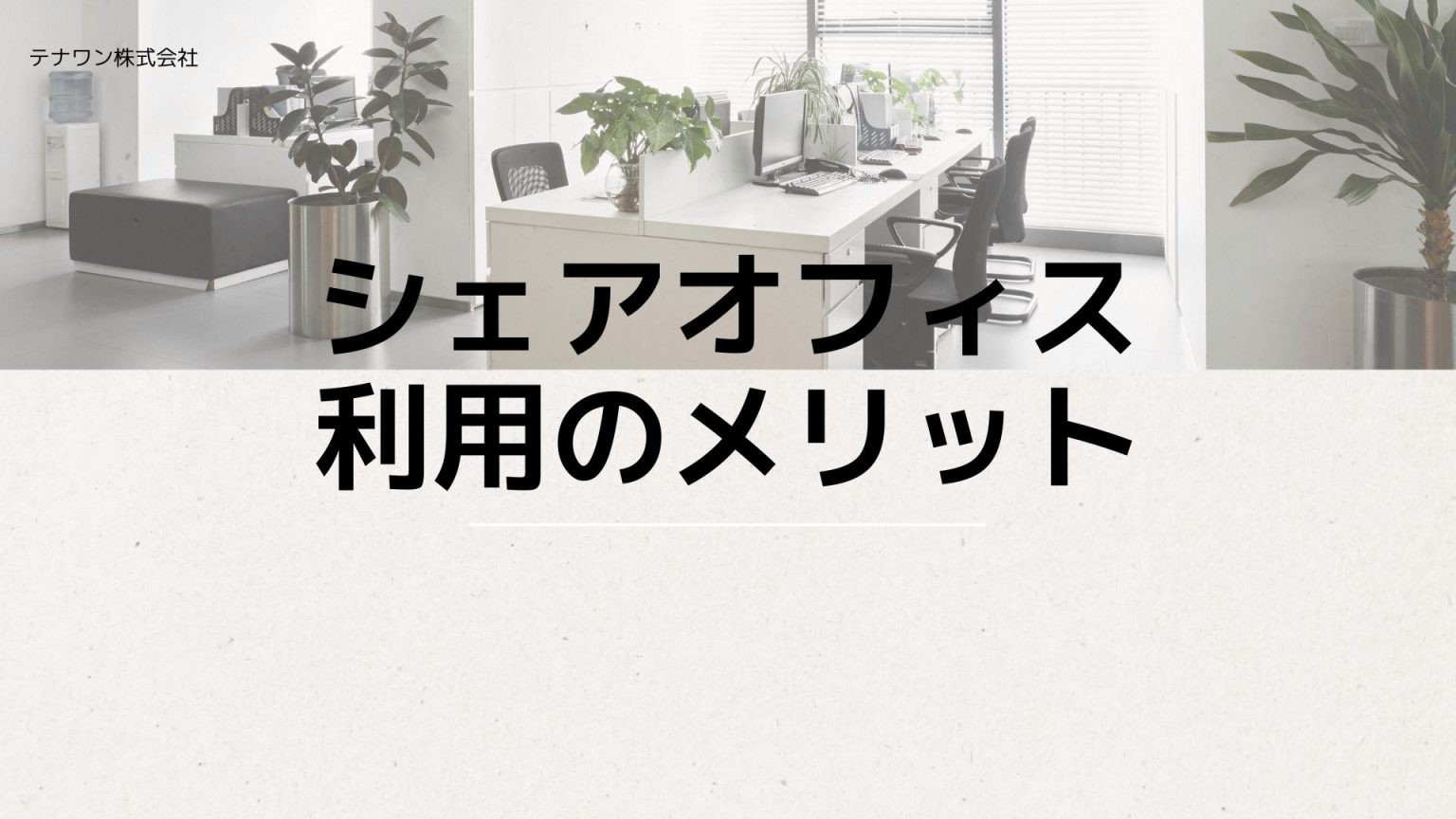 シェアオフィス物件についてはテナワン社にご相談ください