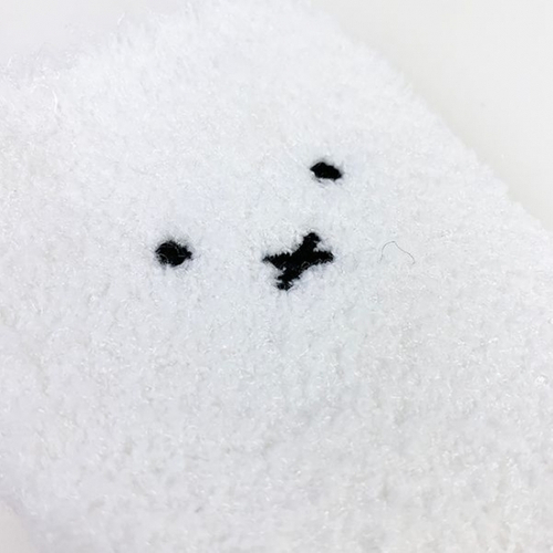 靴下のお顔部分のアップです。生地のふわもこな感じが伝わりますね~。