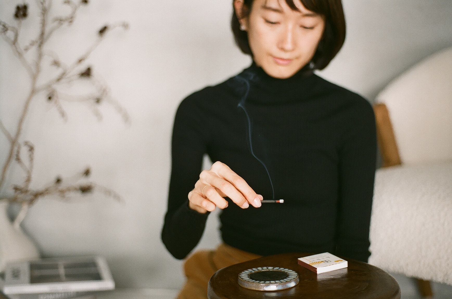 兵庫県播磨地方を拠点に、マッチ製造の長い歴史を持つ「神戸マッチ株式会社」と、線香の一大産地・淡路島で革新的なものづくりを続ける老舗「株式会社大発」が出会い、約3年間の開発期間を経て、2015年4月にデビュー。「マッチのように擦って火をつけるお香」というユニークさは、擦っても折れにくい強度と燃焼性を両立させるという、難易度の高い技術によって支えられています。2023年9月には東京蔵前にコンセプトストアをオープン。