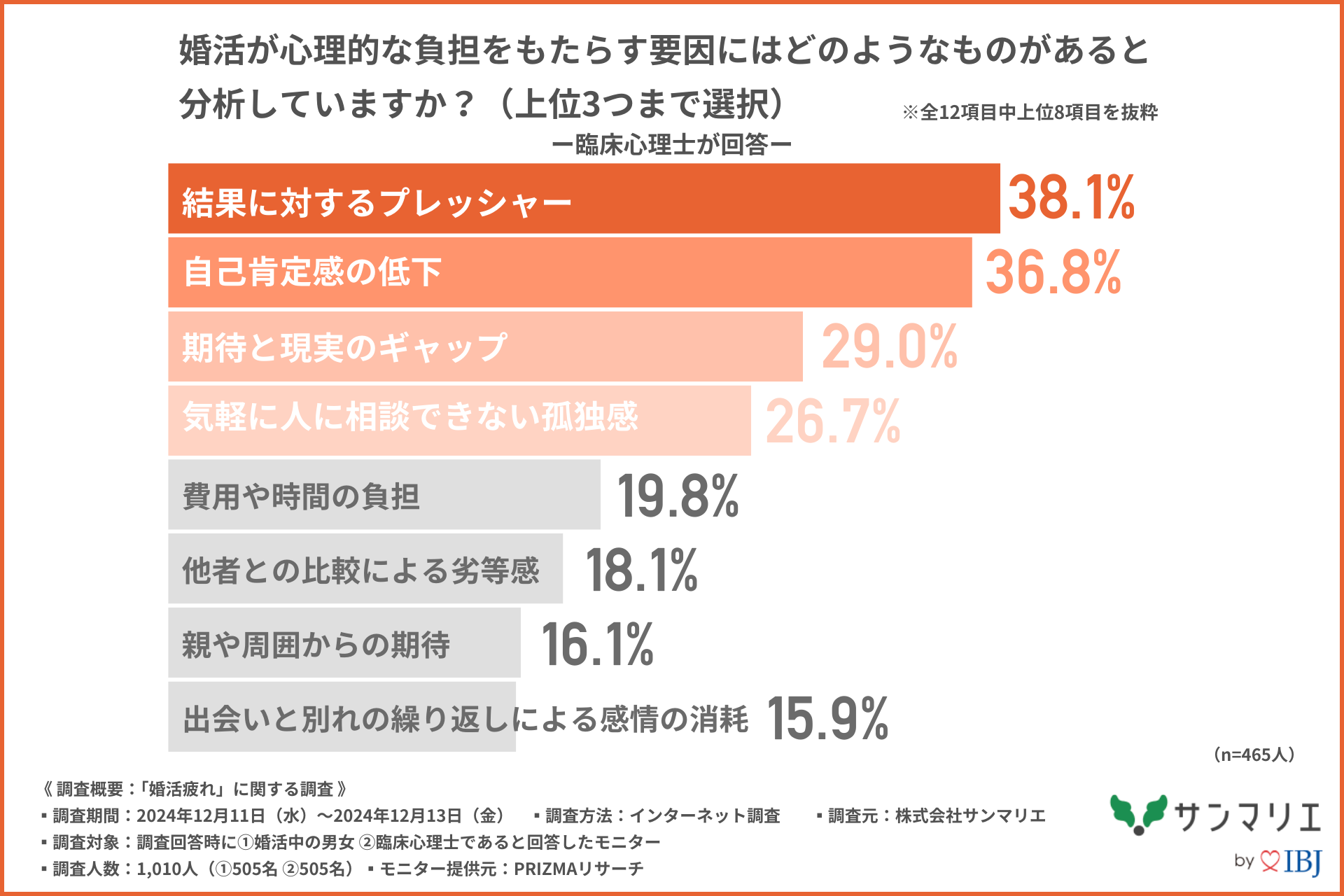 そこで今回、株式会社サンマリエ( https://www.sunmarie.co.jp/ )は、(1)婚活中の男女505名/(2)臨床心理士505名を対象に、「婚活疲れ」に関する調査を行いました。