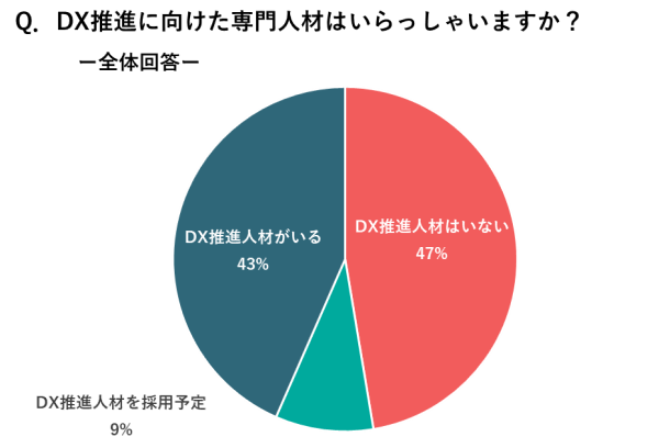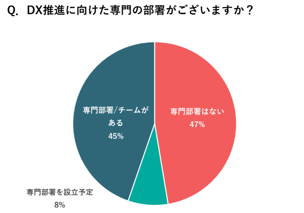 2.専門人材、専門部署に関して、ともに47%が「ない」と回答、およそ半数にのぼる。