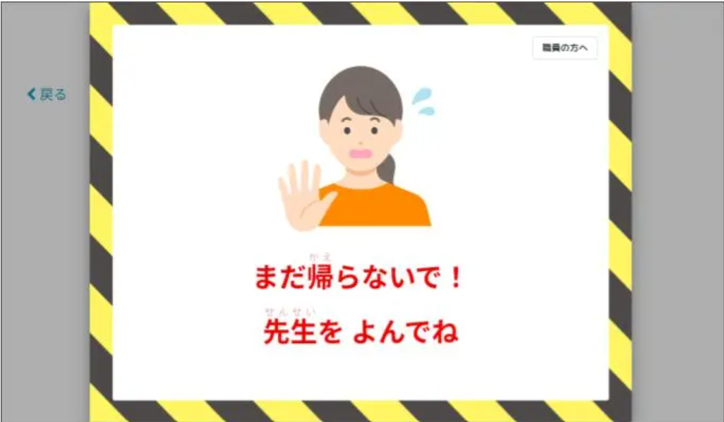 本機能により、児童が誤った時刻に打刻してしまうことを防ぎ、予定外の早期帰宅のリスクを軽減することが可能となりました。