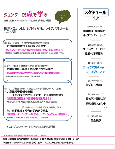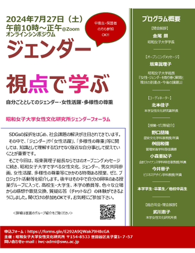 世代を超えて意見交換 昭和女子大学女性文化研究所 ジェンダーフォーラム「ジェンダー視点で学ぶ-自分ごととしてのジェンダー・女性活躍・多様性の尊重-」7/27開催