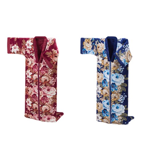 外側はフランネル毛布地、内側はもこもこ毛布地になっており寝袋タイプで冷たい空気をシャットアウトして全身を暖かく包みます。