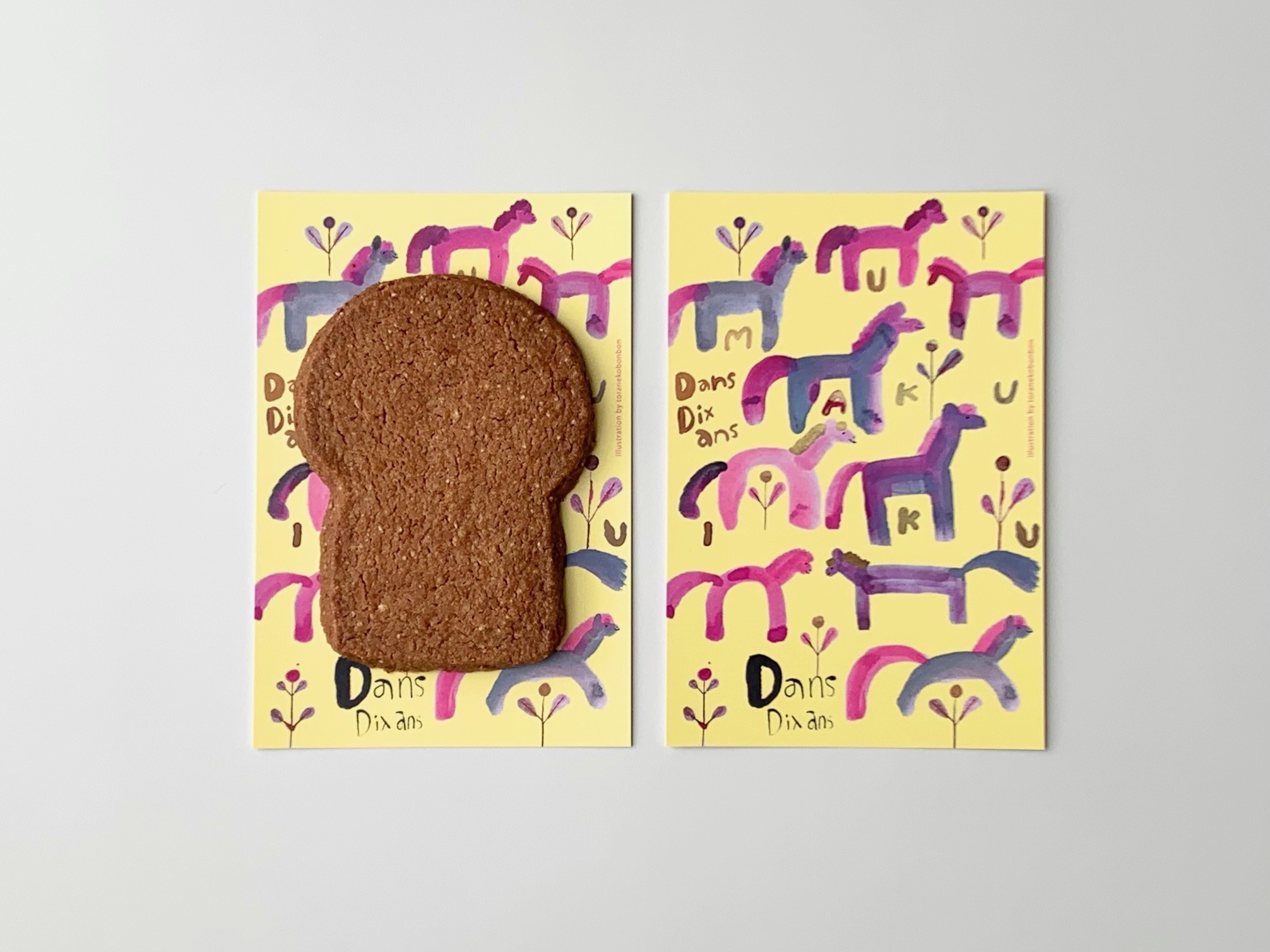 オープンを記念して商品をお買い上げいただいたお客様に吉祥寺で人気のパン屋、ダンディゾンさんの「馬九いくサブレ」と“GRANDMA MAMA DAUGHTER吉祥寺オリジナルトートバッグ”をプレゼントします。(どちらも数量限定)