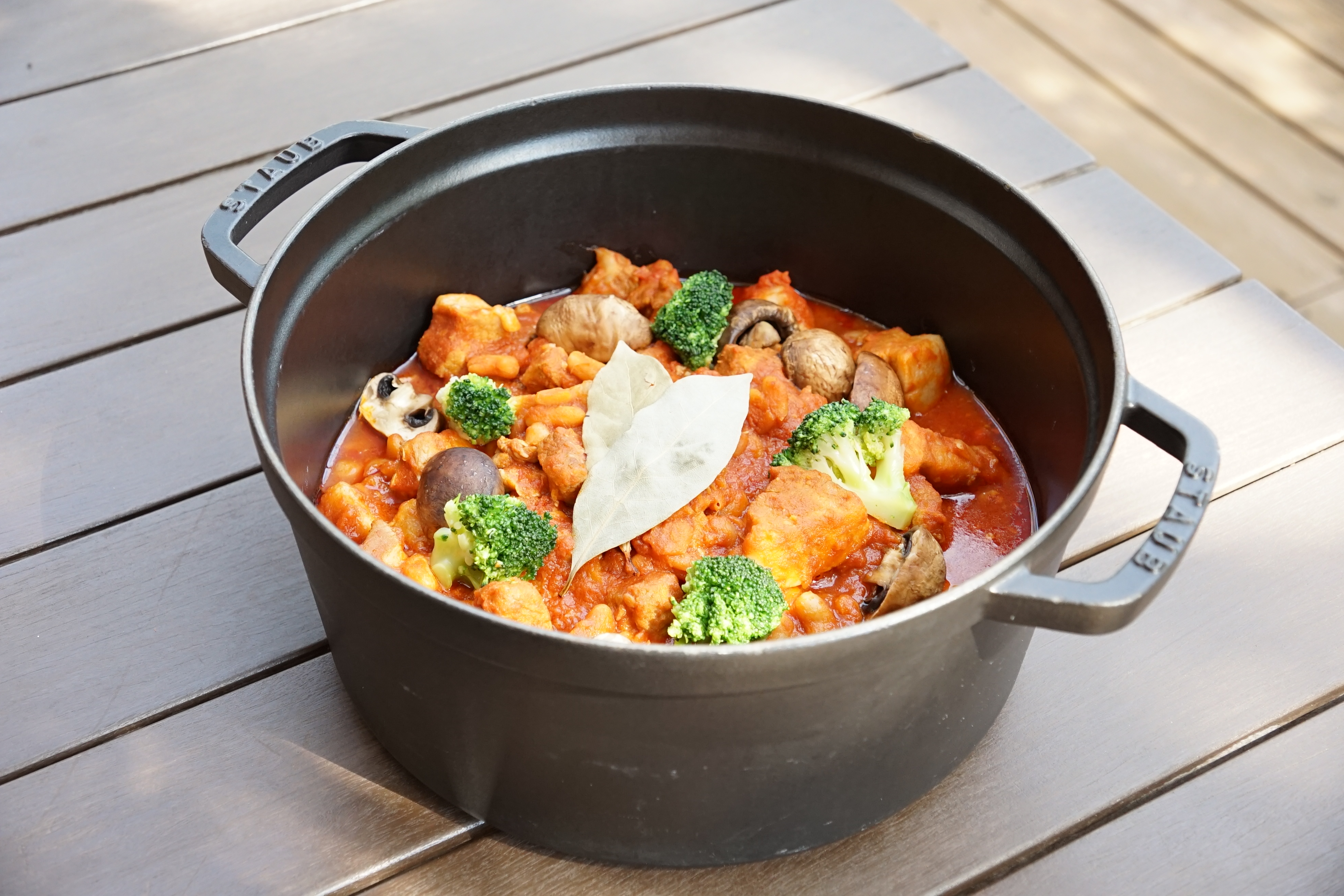 白いんげん豆と豚肉をトマトでことこと煮込み、ソーセージや秋野菜、マッシュルームを合わせた温かな一皿。
