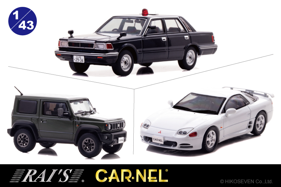 株式会社ヒコセブン(所在地:神奈川県横浜市、代表取締役:原島 行雄)は、オリジナルブランド「RAI'S」からダイキャスト製 RAI'S 1/43 日産 セドリック (YPY30改) 1985 警視庁交通部交通機動隊車両 (覆面 紺)、CARNEL 1/43 三菱 GTO Twin Turbo (Z16A) 1993 Galaxy White、 CARNEL 1/43 スズキ ジムニー シエラ JC (JB74W) 2018 Jungle Greenを2025年6月6日より直営店の「モデルギャラリーHIKO7」及び全国模型取扱店にて予約開始いたしました。