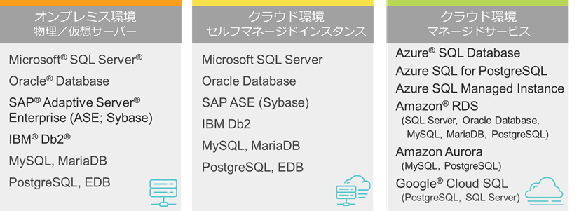 対応データベース : Oracle Database、SQL Server、SAP ASE、DB2、