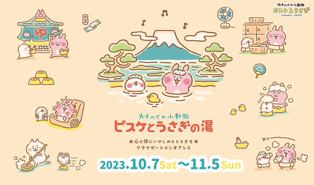 「カナヘイの小動物 ピスケとうさぎの湯」は、10月10日銭湯の日にちなんで、「昔懐かしのレトロ銭湯で命の洗濯。ピスケとうさぎの湯がほっこり癒します。」をコンセプトに銭湯テーマのアートを使用したオリジナル商品の発売とお買い上げ特典をご用意いたしました。