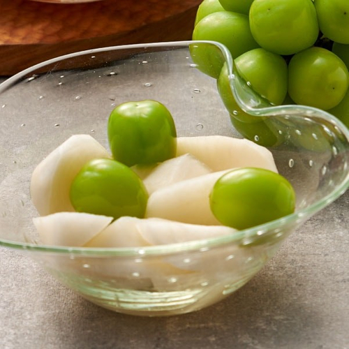 香り高いシャインマスカットを白ワインベースの甘酢に漬け込んだ「葡萄のしずく」は、上品な香りと甘さが特長。